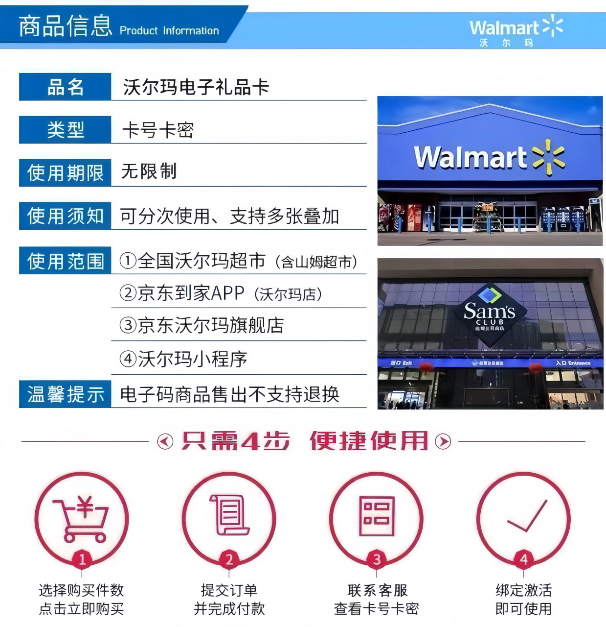 沃尔玛电子卡100元面值